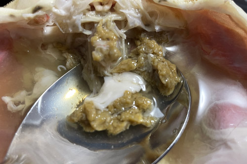 カニみそは少な目でした。この白いフワフワしたのも美味しいんですよね。