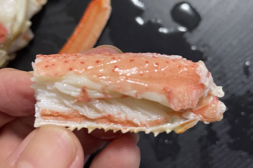 甘みもあまりなく、うま味も少ないです。同じカニでこんなに身の味が違う事にびっくり。細いので食べにくいし、正直、途中で食べるのが面倒くさくなりました。